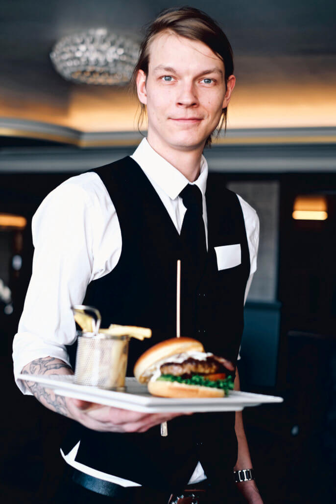 På ærverdige Dr. Holms har det blitt servert både varm og kald mat helt fra hotellet åpnet i 1909. Her er det levende lys, kunst på veggene og servitører som beveger seg lett mellom bordene. Eirik har jobbet i hotellbransjen de siste åtte årene, og for han har Dr. Holms så langt vært et spennende og annerledes kapittel.