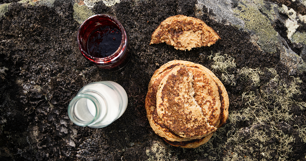 For på hytta deles dagen mest opp i måltider. Deilig lang frokost med egg, jus, nystekte rundstykker og kaffe. Og så forberede en pannekakerøre som man kan ha med seg på tur, med litt syltetøy. Gå ut i skogen, eller opp på fjellet. Bygge seg en liten plass, sitte ned, tenne et bål og bare la tiden gå. Det er det som er livet på fjellet!