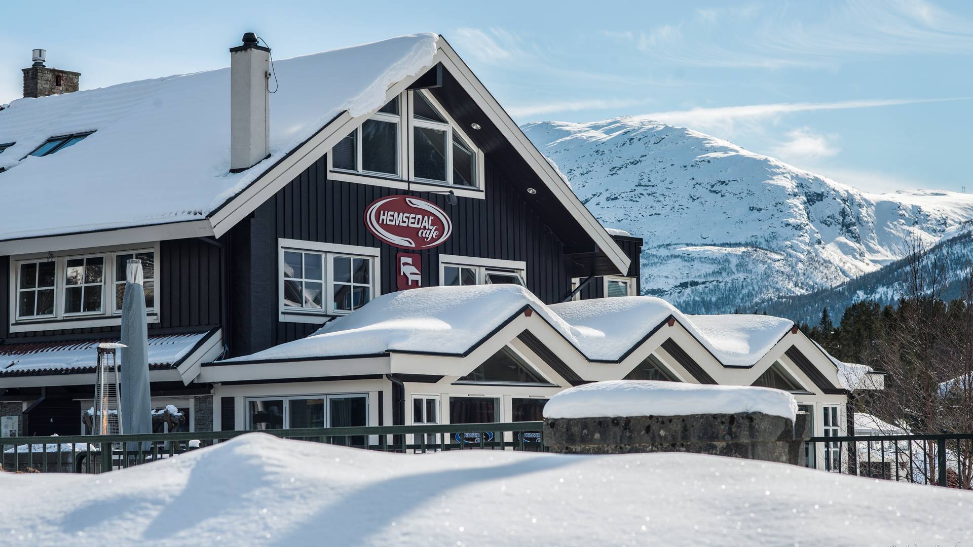 Hemsedal Café Hemsedal Café ligger midt i hjertet av Hemsedal Sentrum, og ble etablert i 1989. På vinterstid kan man stå på ski ned «sentrumsløypa» fra toppen av Hemsedal Skisenter og rett ned til Cafeen. Gratis skibuss stopper jevnlig på utsiden og frakter deg tilbake til skisenteret. Cafeen er det naturlige treffstedet for Snøfolket. Historien ligger i veggene, og du får straks følelsen av alle minnerike utelivsopplever som er levert her i over 25 år. Hemsedal Café har blant annet blitt kåret til verdens beste afterski hele 3 ganger. Med stor profilendring de siste årene, har Cafeen blitt en koselig restaurant med herlig atmosfære. Nytt for i år er en utarbeidet a`la carte meny som tilbys våre kveldsgjester. Dagtid finner du enkler meny, med noe for en og hver. Fokus på lokale råvarer hvor så godt som samtlige kjøttretter kommer fra Brandvoll Fjellgard i Hemsedal.